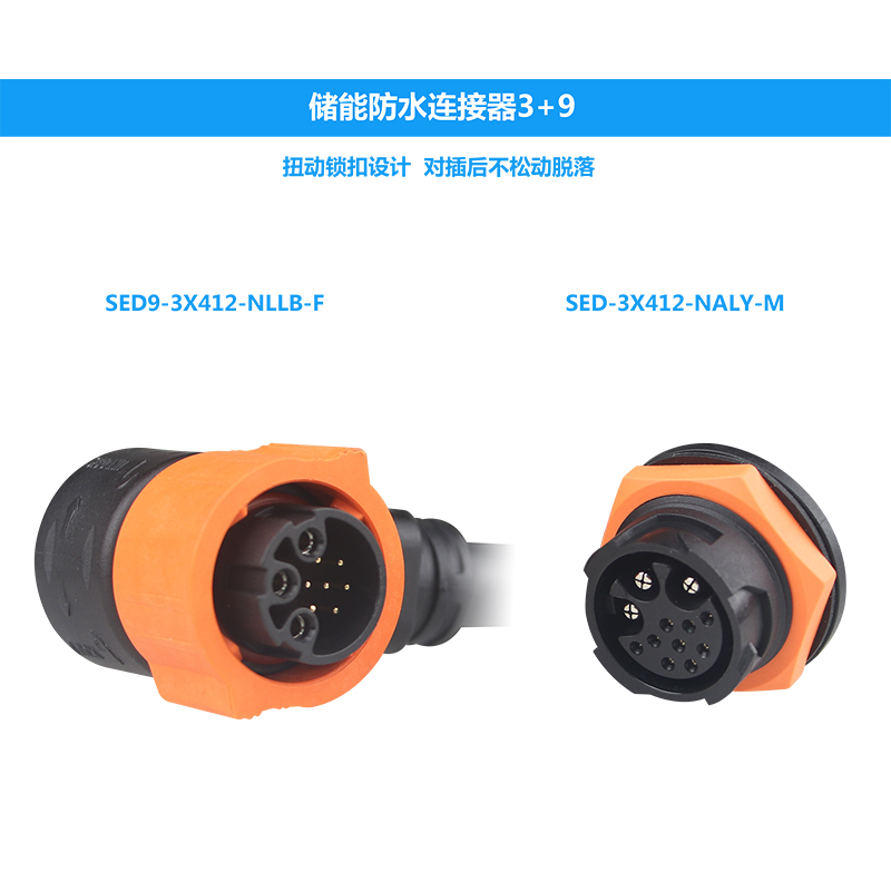 圣恩迪連接器SED-3X412-NALL儲(chǔ)能防水連接器3+9彎頭30A公母頭鎖扣固定插頭是圣恩迪品牌研發(fā)設(shè)計(jì)生產(chǎn)的一款新品3+9儲(chǔ)能防水連接器。